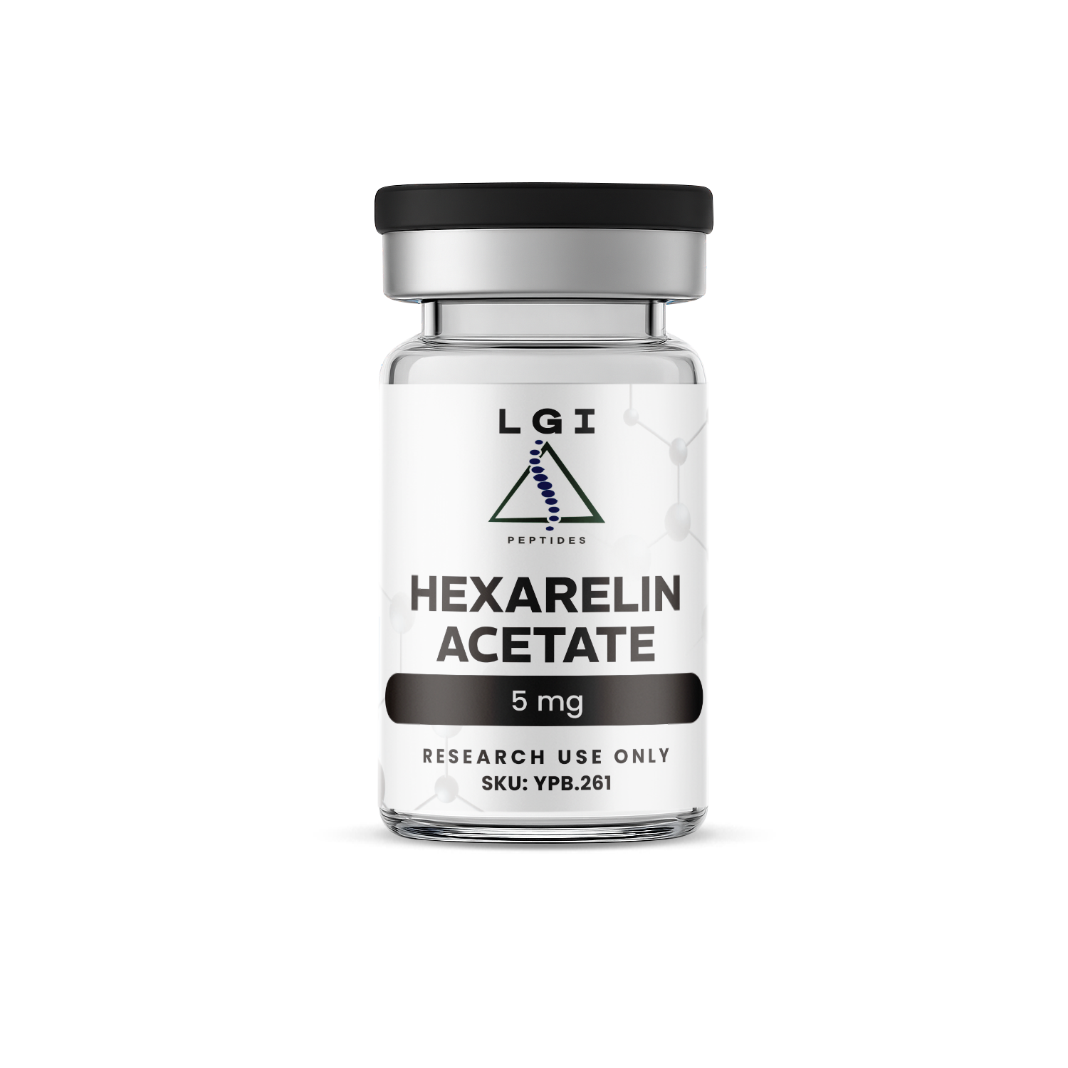 A single-component research material supplied for controlled research environments. Hexarelin Acetate (5 mg) is a synthetic growth hormone secretagogue peptide studied for its ability to bind to GHS-R1a receptors and stimulate growth hormone release in preclinical models.